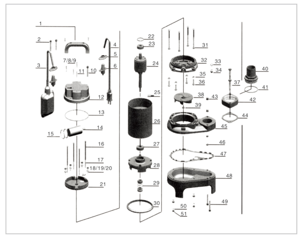 型號后加“F”表示裝配浮球開(kāi)關(guān)的水泵
